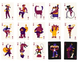 ZIRKUS is an illustrated playing card deck, consisting of 52 different illustrations. The playing cards are inhabited by various circus-themed characters – from clowns and wizards to the ladies & gentlemen in the audience.